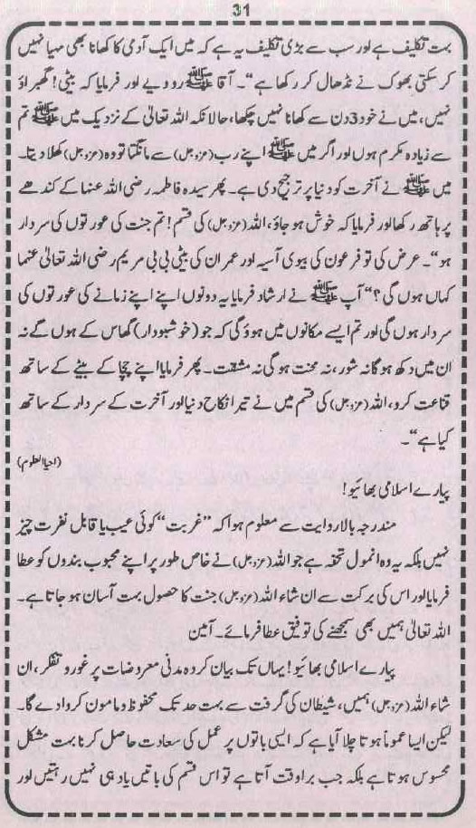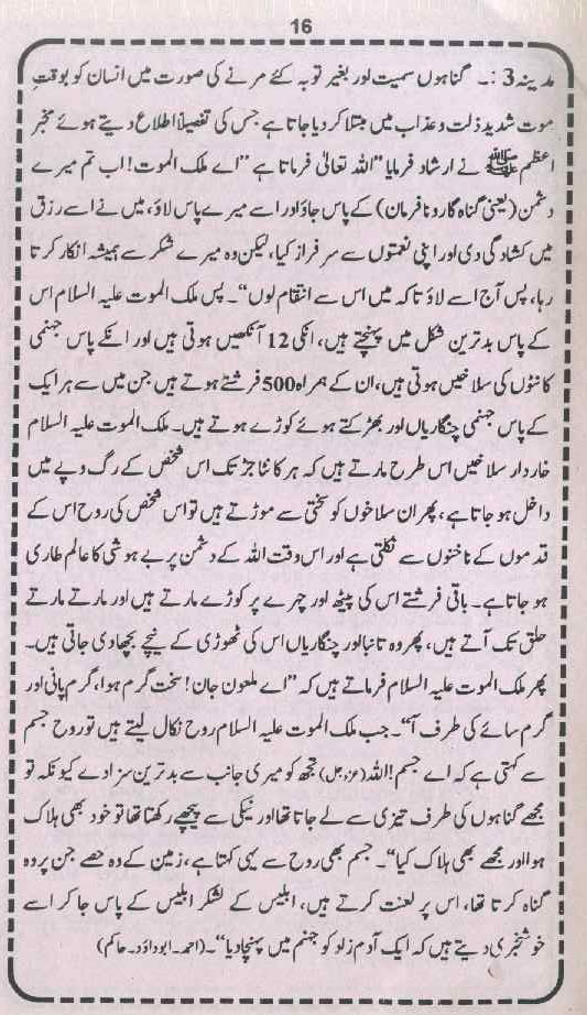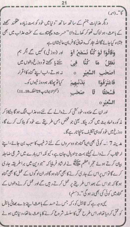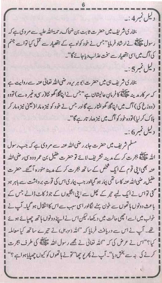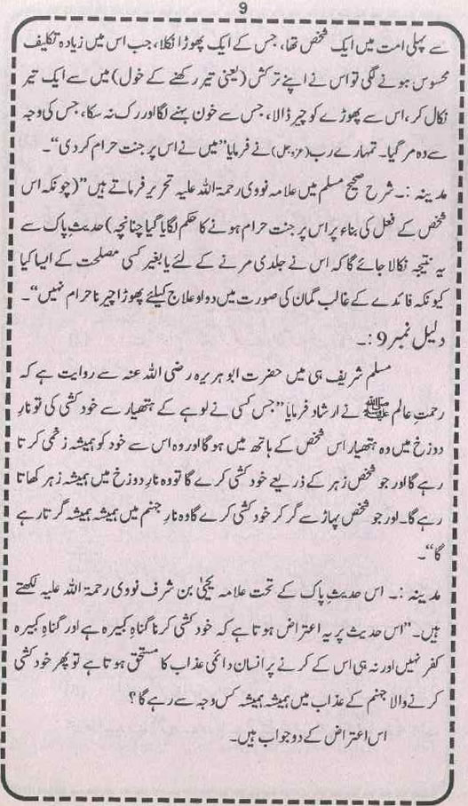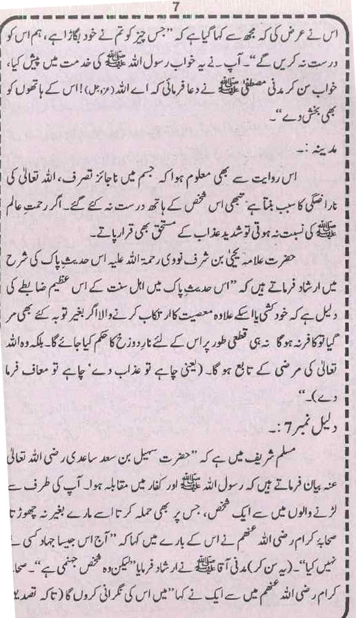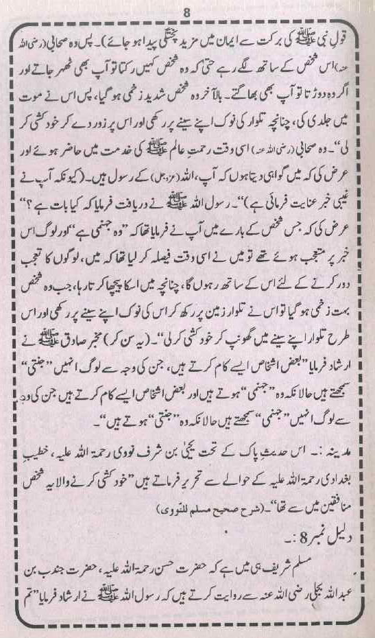 - Hadith No.3: "Before death, a sick person cut his own fingers due to prolonged sickness and depression. Rasulullah (saw) saw him in dream and he was hiding his fingers. Rasulullah prayed to Allah to forgive him for cutting his own fingers". (Muslim)